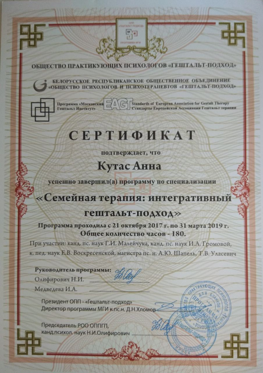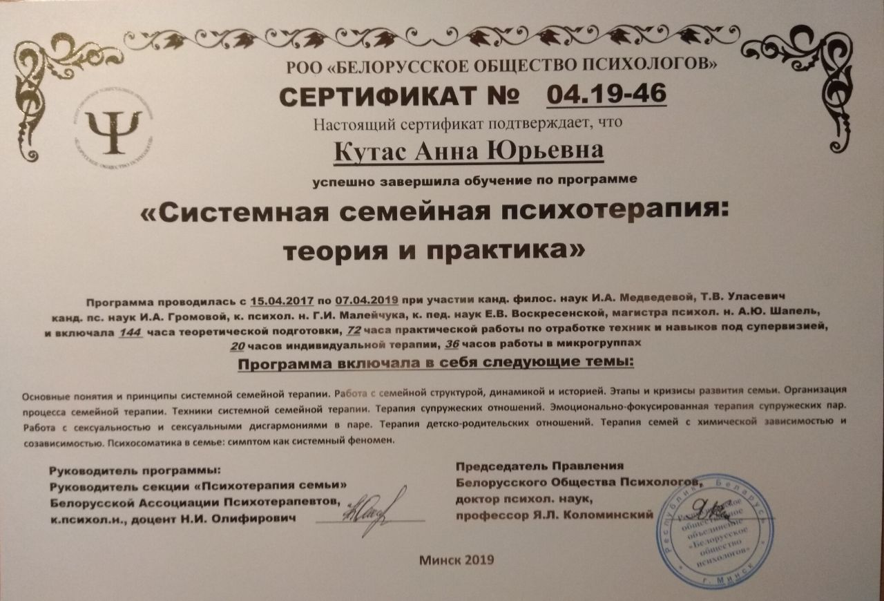 3. Специализация МГИ «Системная семейная терапия» 180 часов;